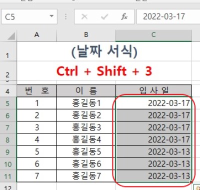 3. 마지막으로 "Ctrl + Shift + 3"을 눌러서 날짜 서식을 맞춰주면 완료!!