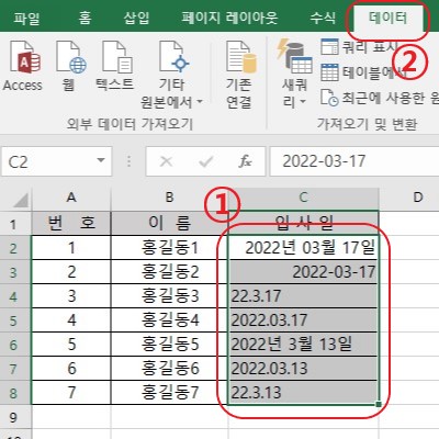 엑셀 - 날짜 형식이 뒤죽박죽 일때 [컴린이]