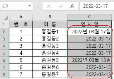 날짜 형식을 일정하게 정리하는 방법 입니다.