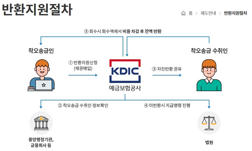 ▷ 송금인은 착오송금 발생 시 송금금융회사를 통해 먼저 반환청구를 요청한 후 예금보험공사에 신청해야 합니다.